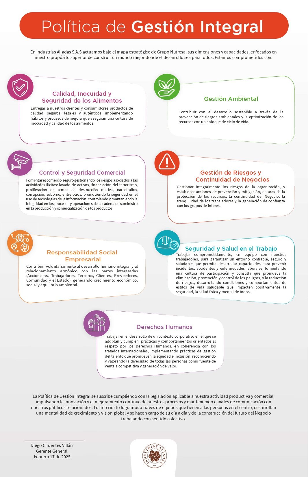 En Colcafé estamos comprometidos con la calidad e inocuidad de nuestros productos, el desarrollo sostenible, el bienestar de nuestros colaboradores y el desarrollo de nuestra cadena de valor. Un compromiso avalado por certificaciones nacionales e internacionales.